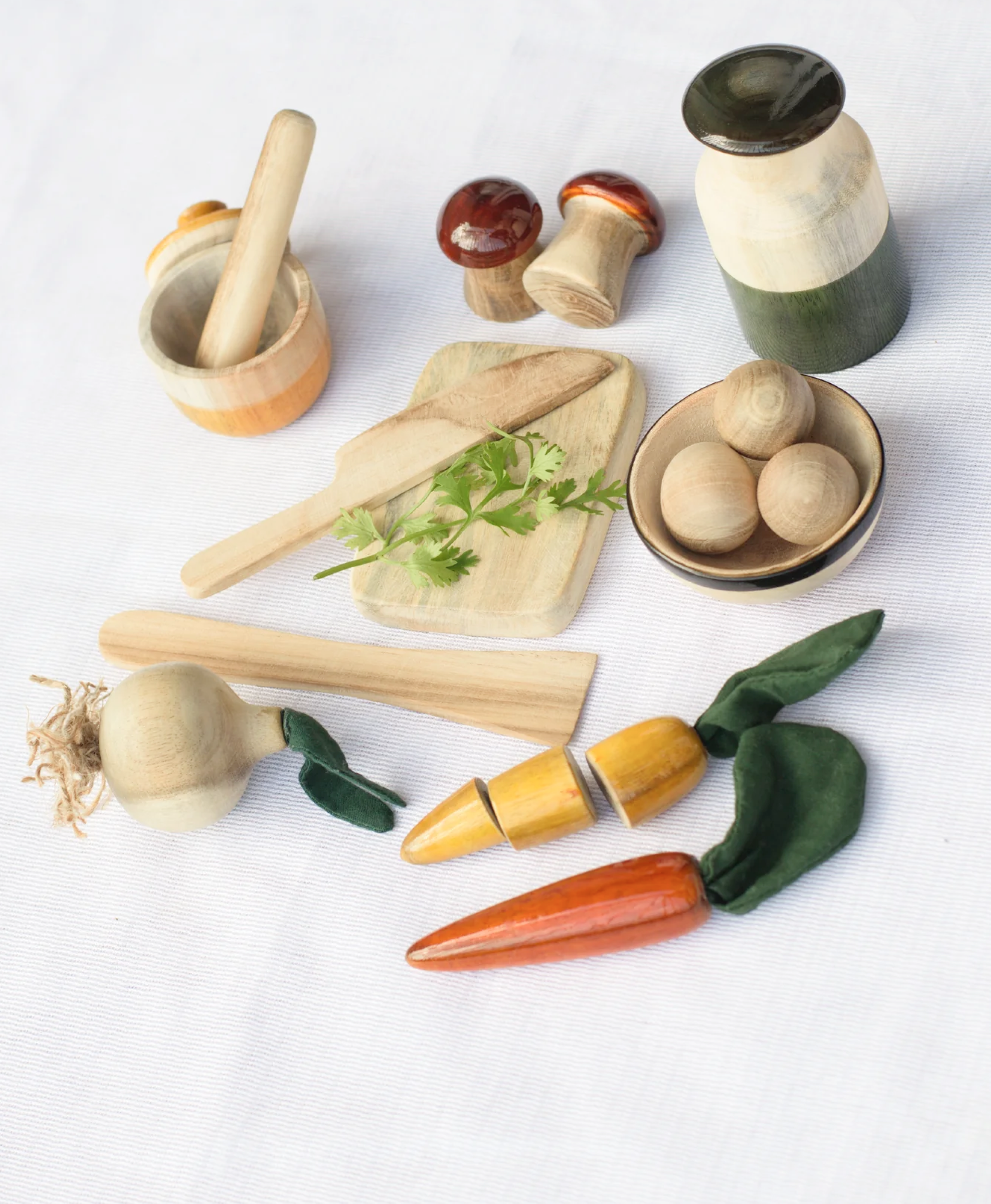 Designed as a plastic-free Play Dough Kit, it reflects our commitment to nature and sustainability. Each kit includes natural loose parts sourced from various regions, allowing children to experience the textures and wonders of nature firsthand. The wooden spoon provided helps children regulate the dough's usage, fostering mindful play while subtly teaching responsibility.